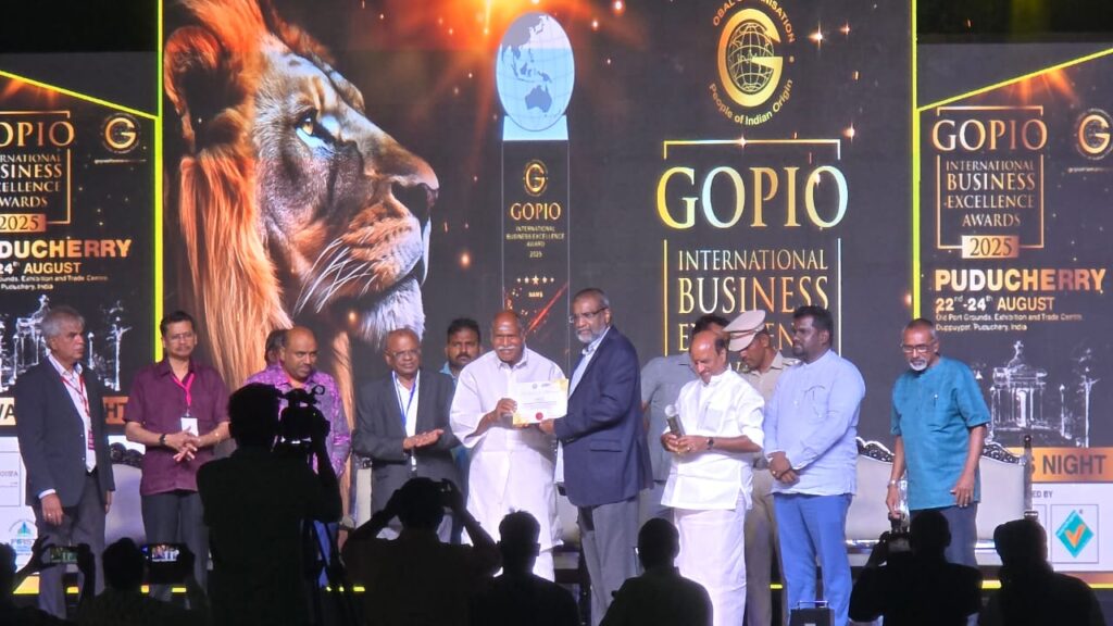 இந்தியாவில் புதுச்சேரியில் இடம் பெறுகின்ற உலகளாவிய ரீதியிலான இந்திய வம்சாவளி அமைப்பான கோபியோ( GOBIO)அமைப்பு ஏற்பாடு செய்திருக்கின்ற சர்வதேச வர்த்தக கண்காட்சி மற்றும் சிறப்பு விருது வழங்கும் விழா கடந்த 22 ஆம் திகதி முதல் 24-ம் திகதி வரை இடம்பெற்று வருகின்றது.