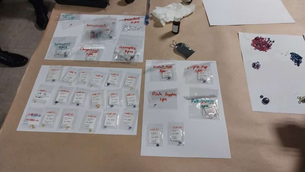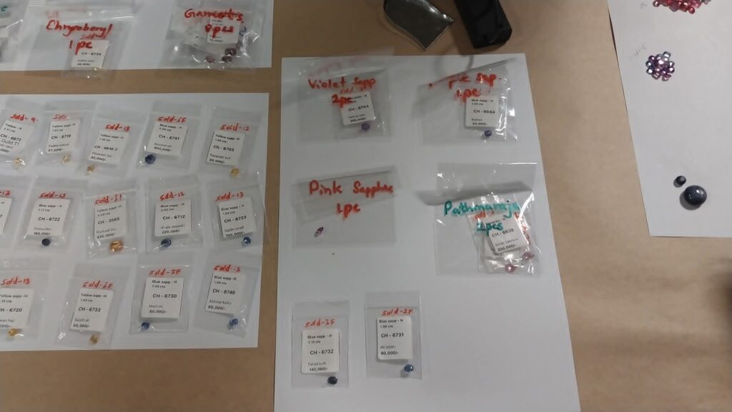 கைப்பற்றப்பட்ட இரத்தினக் கற்களில்,Blue Shaperar,Padmaracha,Spinel,Ruby,Crysobery,Tsavorite,Garnet,Cats Eye,Moonstone,Tourmaline,Star Shaperar, என்பன உள்ளடங்கியுள்ளன.