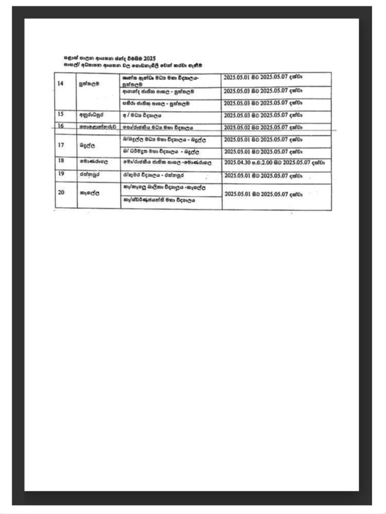 பின்வரும் பாடசாலைகளை தவிர, அனைத்துப் பாடசாலைகளும் அன்றைய தினம் வழமைப் போல் செயல்படும் என்று அமைச்சு வெளியிட்டுள்ள அறிக்கையில் தெரிவிக்கப்பட்டுள்ளது.