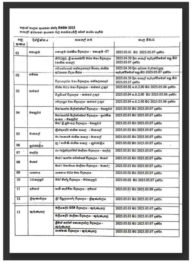 மே 7 ஆம் திகதி மூடப்படும்  சில பாடசாலைகள்,